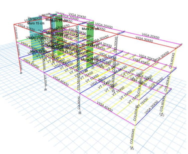 Diseño estructural del proyecto Policarpa Salavarrieta el cual consta de dos estructuras de uso educativo en sistema de pórticos de concreto reforzado y cimentación superficial de zapatas aisladas con vigas de amarre.