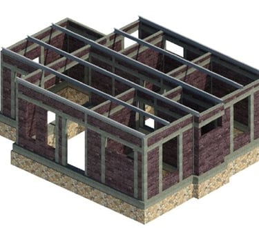 Diseño estructural del proyecto El Hato, el cual consta de una estructura en mampostería confinada y cimentación superficial de vigas corridas.